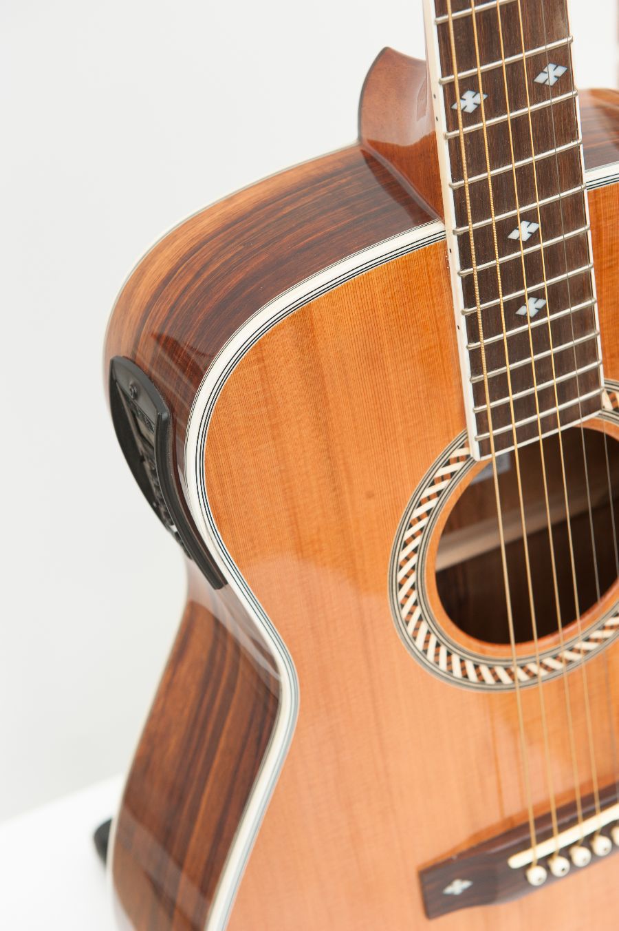 후판에는 강도나 외형을 살릴수 있는 자재를 사용하였으며, 넥에 사용된 마호가니는 균형잡힌 소리를 전달 해 줍니다.